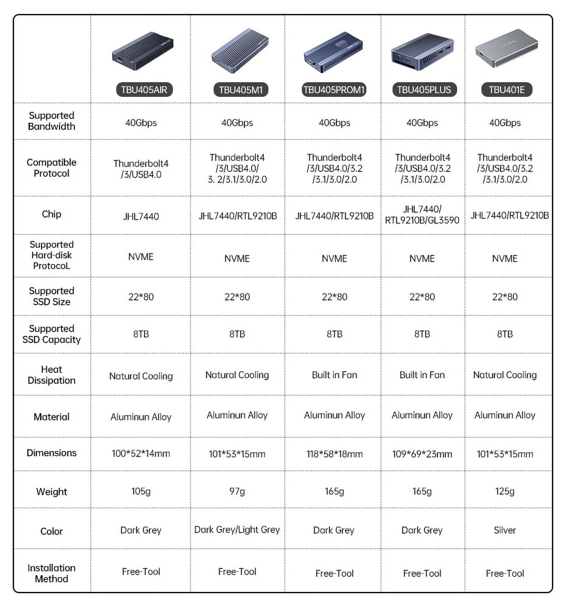 • ‌Designed for USB4 & 40Gbps Ports: The TBU405 Air is engineered exclusively for the native USB4 and 40Gbps Type-C interface standard, standing out as a high-performance USB4 enclosure and 40gbps enclosure. This focused design ensures it delivers uncompromised, peak-performance data transfer speeds. You can fully leverage the maximum potential of your high-speed NVMe SSD for seamless workflows. To guarantee this experience, it is specifically compatible with native USB4 and other 40Gbps-enabled ports, and is not backward compatible with previous USB standards like USB 3.2, 3.0, or 2.0.