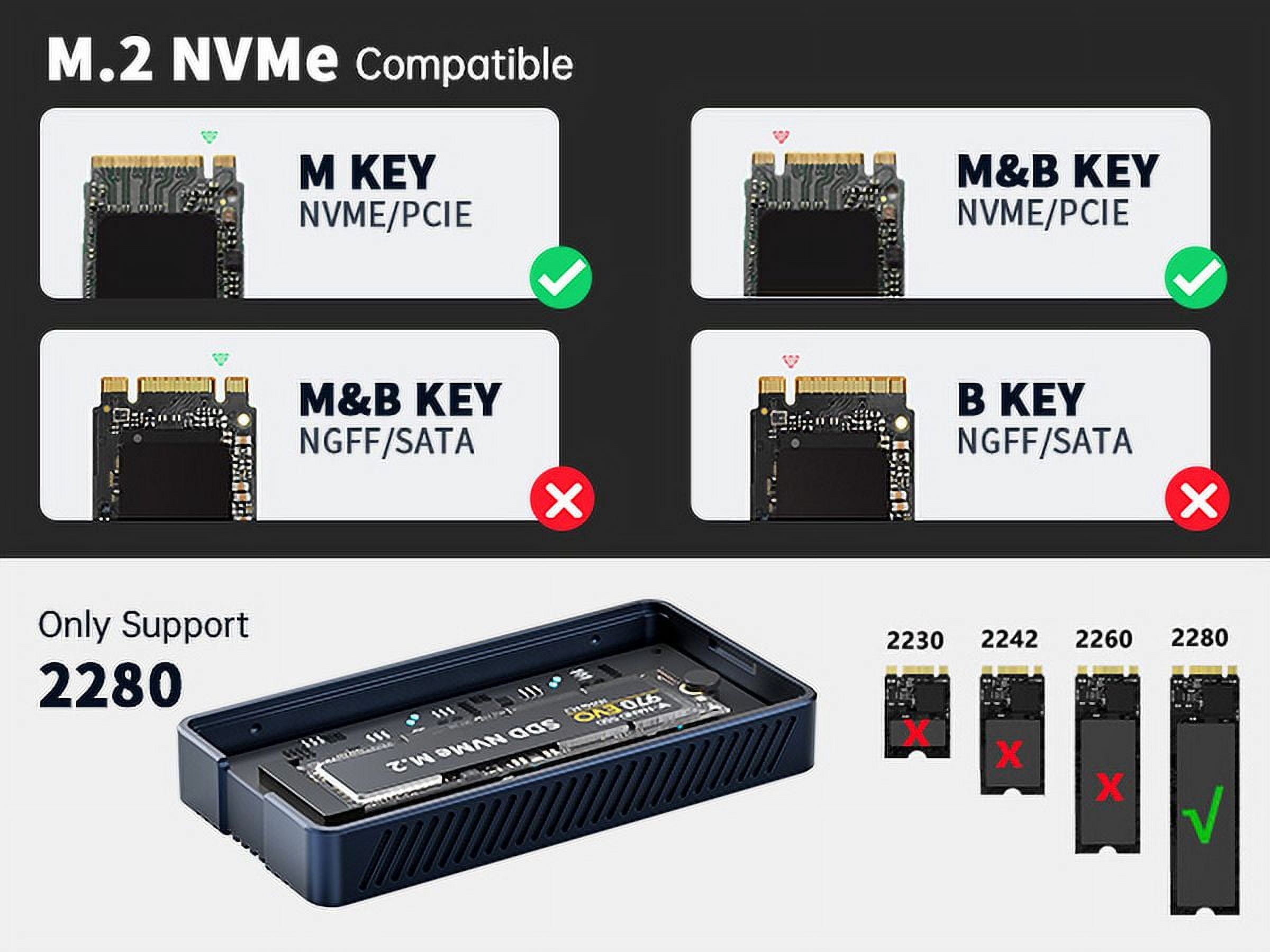 • Large Capacity Expansion: As a robust SSD enclosure, this M.2 NVMe model supports up to an 8TB SSD enclosure configuration, giving you a larger capacity. Working data, popular games, videos, and movies can be stored anytime and anywhere. (Note: SSD NOT INCLUDED)