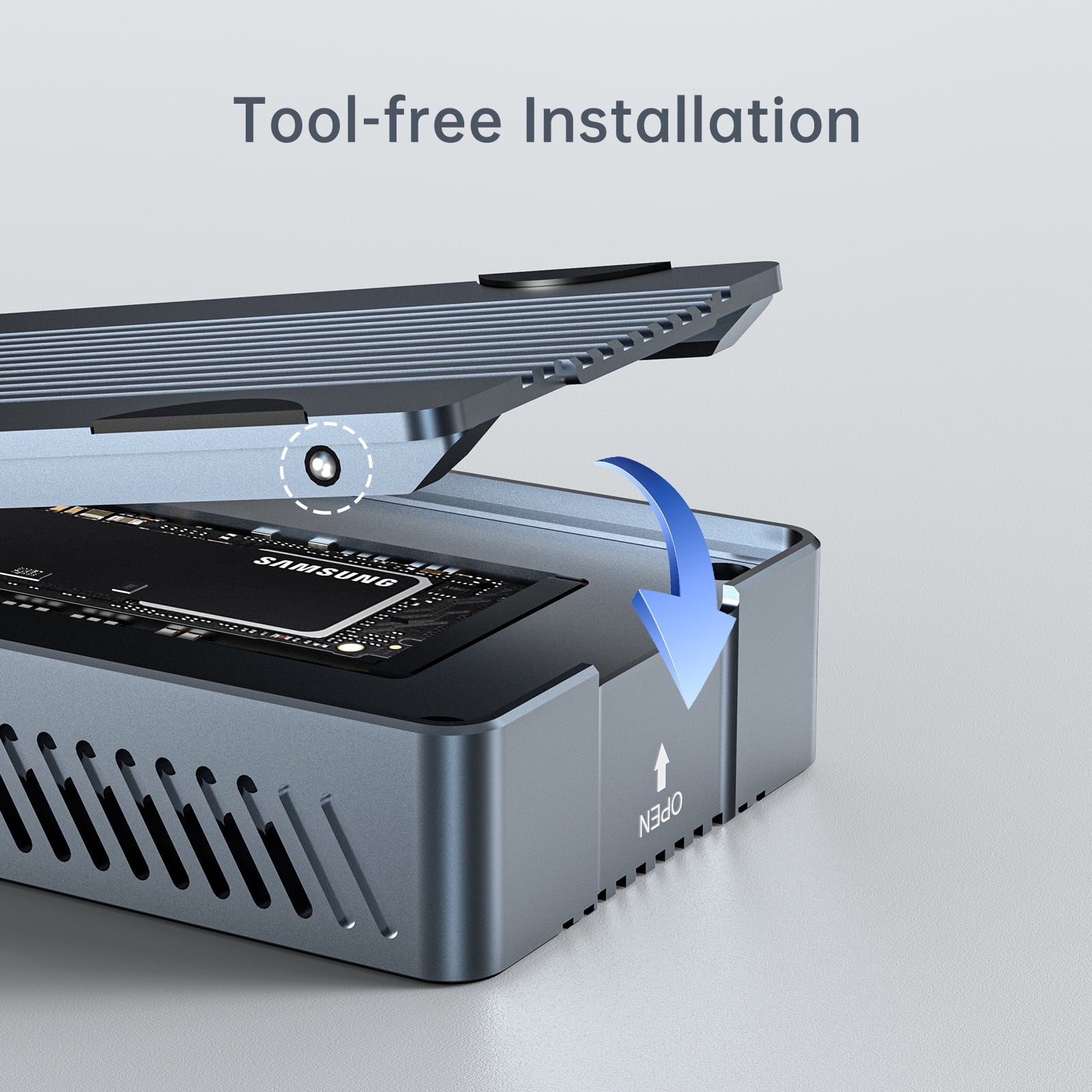 • Tool-free Installation & Wide Compatibility: This versatile USB enclosure features a tool-free design. No screw or screwdriver needed, no additional driver required, plug and play. It’s a convenient portable SSD enclosure that is perfectly suited for travel and business office use.