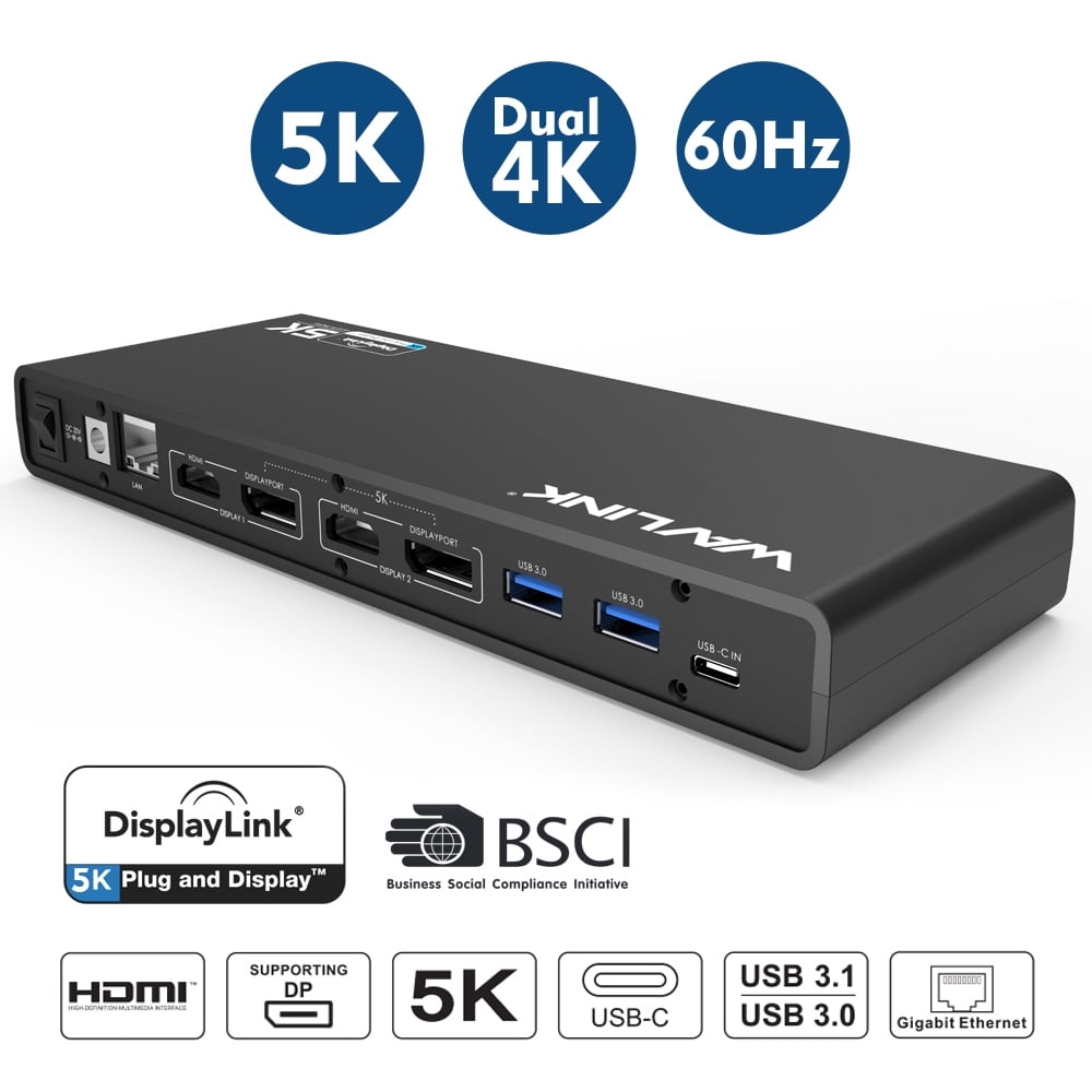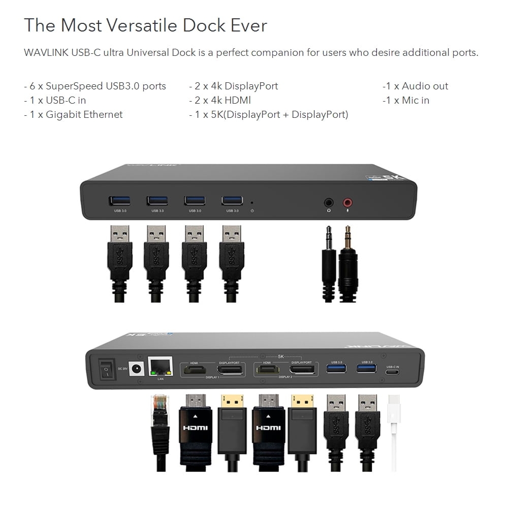 USB-C 5K Dual-Monitor Docking Station for Laptops. The new USB Type-C connector works seamlessly with this Ultra HD 4K Universal Docking Station. It can connect to any host with Standard A or Type C connectors providing a fully backward-compatible and future-proof docking station. Allow you to connect up to two additional monitors and eleven accessories through a single USB cable.